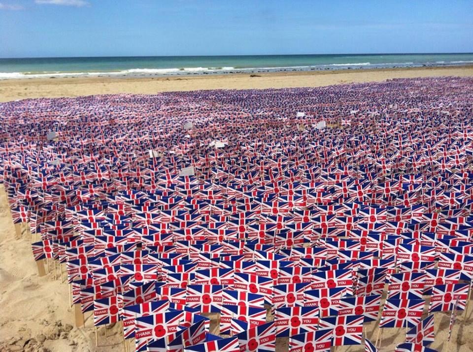 Remembrance Day installation on a beach in the UK.