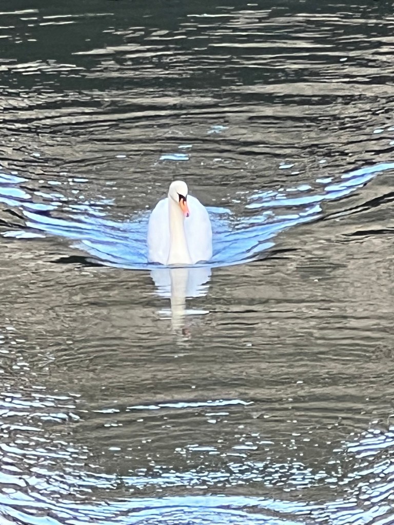 An elegant swan swimming.